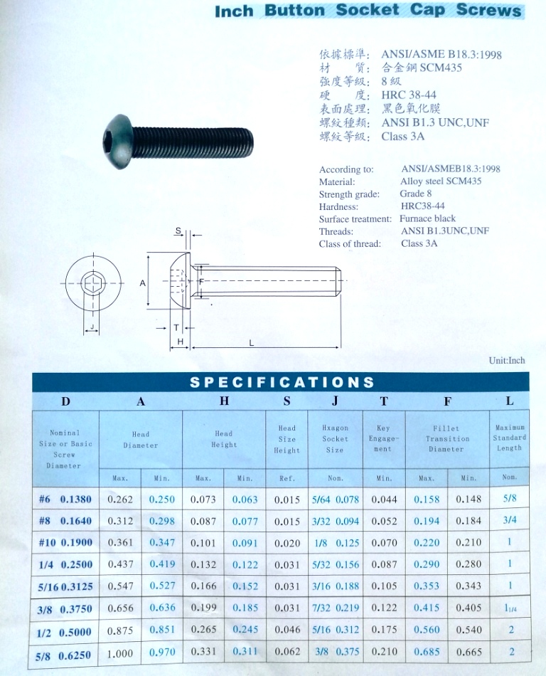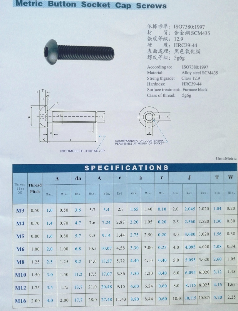 10.9級半圓頭內(nèi)六角螺釘 ISO7380